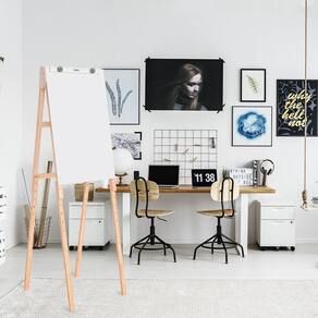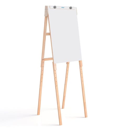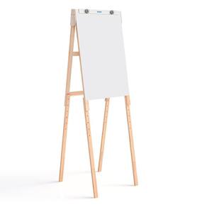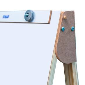 lip Chart Branco Compact Line confeccionado em madeira pinus de reflorestamento, com tampo em chapa de fibra e madeira MDF com acabamento UV, para uso de marcador de quadro branco e com porta-bloco para bloco de papel de Flip Chart. A estrutura em pinus tem madeiras nas medidas de 40 x 18 mm, com pernas articuladas para desmontagem fácil e rápida.