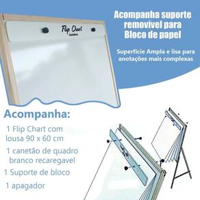 Flip chart quadro branco madeira 60 x 90 apagador caneta