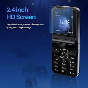 Material: plástico ABS, metal Cor: preto Tamanho da embalagem: 13 x 10 x 5 cm Peso da embalagem: 0,3 kg Lista de embalagem: 1 x telefone flip A50 Pro (cada ponto entre 150 e 170 caracteres) A tela de 2,4 polegadas Possui uma tela grande de 2,4 polegadas para facilitar a visualização, fornecendo uma interface clara e fácil de usar, perfeita para idosos ou para quem precisa de uma experiência simples com o celular. Funcionalidade Dual SIM Com suporte para dual SIM, este telefone flip permite gerenciar dois números de telefone em um único dispositivo, tornando-o conveniente para chamadas profissionais e pessoais. Carregamento tipo C Equipado com uma porta de carregamento tipo C para um carregamento mais rápido e eficiente, garantindo que você passe menos tempo esperando e mais tempo aproveitando seu dispositivo. Gravação automática de chamadas O telefone vem com a funcionalidade de gravação automática de chamadas, facilitando o salvamento de conversas importantes para referência futura ou fins de segurança. Design dobrável e botões grandes O design do telefone flip oferece um formato compacto, enquanto os botões grandes e táteis facilitam a operação, tornando-o ideal para idosos ou pessoas com destreza limitada.