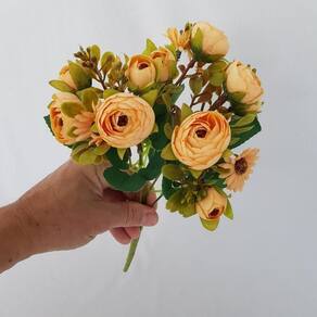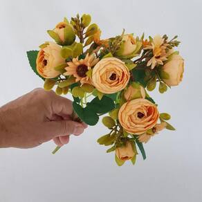 Material: ;Arame, ;Plástico e Silicone;Peso: 139grALTURA DO BUQUÊ: 30cmALTURA ;SOMENTE DA HASTE: 10CMDIÂMETRO APROXIMADO DO BUQUÊ ABERTO: 19cmCONTEÚDO DA EMBALAGEM: 1 ;BUQUÊ DE ;CAMÉLIAS COM MARGARIDAS.