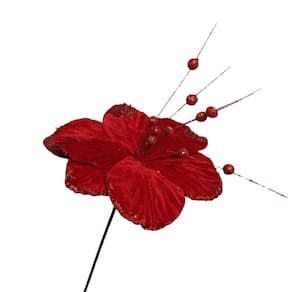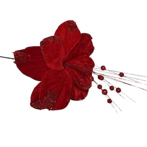 Material: Veludo, EPS, Arame e Glitter;Peso: 52grCor: Vermelha;Conteúdo da Embalagem: 1 Flor Artificial Vermelha;Haste: 45cmDiâmetro da Flor: 27cm