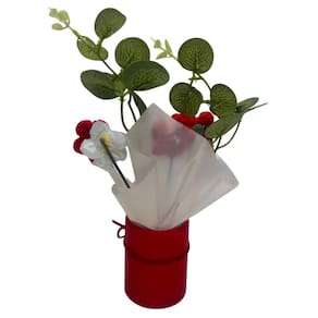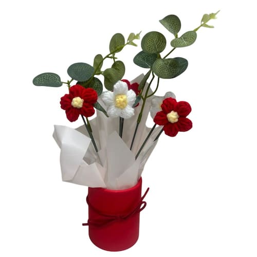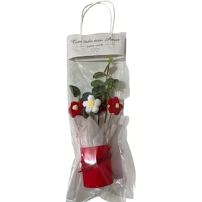 Surpreenda no Dia das Mães com uma linda flor artificial em crochê, delicada e cheia de charme. Acompanha vaso decorativo e sacola personalizada, pronta para presentear com carinho.