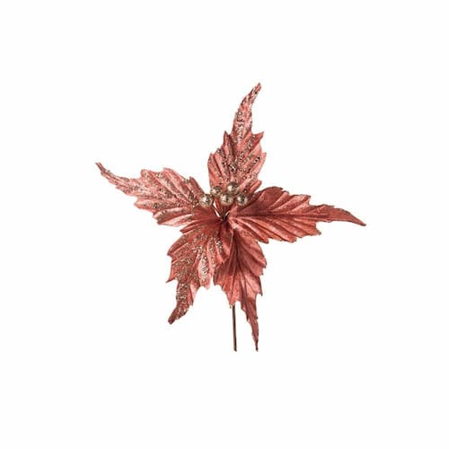 Poinsetia Em Veludo - Composição/Matéria Prima - 75% Poliéster 10% Papel 5% Plástico 5% Metal - Cor Predominante - Rose Gold - Cod. Cromus - 1361097 - Instruções Adicionais e Limpeza - Limpar com pano macio e seco
