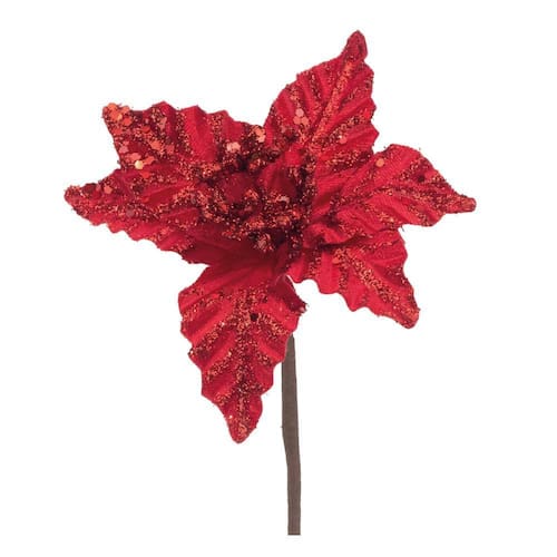 Poinsétia - Embalagem de Venda: 1 UN - Cor Predominante: VERMELHO - Instruções de Limpeza: Limpar somente com pano macio e seco. - Composição: Plástico, Poliéster, Metal e Isopor