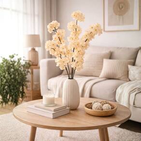 Leve mais beleza, suavidade e sofisticação para sua decoração com a Flor de Pêssego Creme Artificial com 4 Galhos. Um arranjo encantador, desenvolvido para trazer um toque floral elegante e atemporal aos ambientes, sem a necessidade de cuidados constantes.