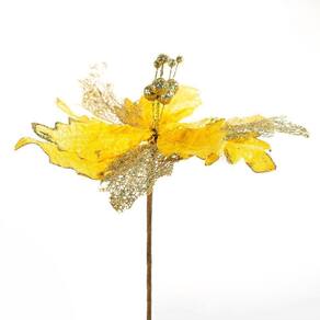 Flor Decoração De Natal Artificial Brilho Amarela 30cm -