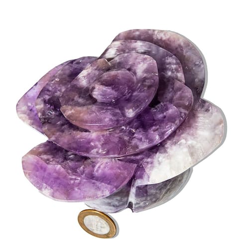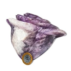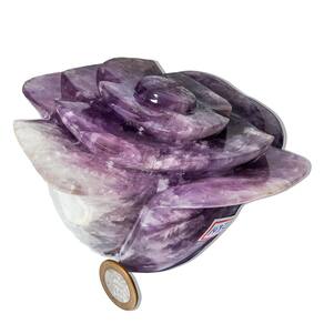 Escultura Flor em Ametista – Espiritualidade, Proteção e Serenidade para Sua Decoração Esculpida artesanalmente em Ametista natural, esta flor vai além da beleza estética: é um símbolo de elevação espiritual, proteção energética e tranquilidade interior. Seu design delicado valoriza a forma orgânica da flor e o brilho sutil da pedra, tornando-a perfeita para quem busca harmonia e significado profundo na decoração. Significado da Ametista:Conhecida como a “pedra da espiritualidade e proteção”, a Ametista emana vibrações que favorecem a meditação, a purificação da mente e a conexão com planos superiores. Suas propriedades estão associadas a:\nClareza mental e intuição elevada\nAlívio do tensão e da ansiedade\nProteção contra energias negativas\nO formato de flor, símbolo universal de beleza, renascimento e suavidade, reforça a energia de transformação e equilíbrio, tornando esta peça ideal para espaços de introspecção, práticas espirituais ou como ponto de serenidade em sua casa. Detalhes da Escultura:Pedra: Ametista NaturalFormato: Flor (artesanato manual)Acabamento: Lapidado com brilho leve e toque suaveCor: Roxo translúcido (variações naturais) Tamanho Aproximado: 14cmPeso Médio: 1,4KgClasse: B (pode apresentar pequenas imperfeições visuais ou variações na lapidação)Origem: Cristais de Curvelo – MG, Brasil Cuidados:Limpar com pano seco ou levemente umedecido. Se desejar realçar o brilho, pode-se utilizar óleo mineral com moderação. Observação Importante:Cada escultura é única, feita com pedra natural. Pode conter variações de tonalidade, veios, marcas ou pequenas inclusões, características que não são defeitos, mas evidências da sua autenticidade e origem natural. As fotos são ilustrativas. Marca: Não Informado