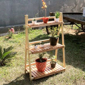 A estrutura dobrável facilita o transporte e armazenamento, tornando-a prática e versátil. Ideal para quem deseja expor plantas de maneira organizada e elegante, sem abrir mão da durabilidade e beleza da madeira natural.