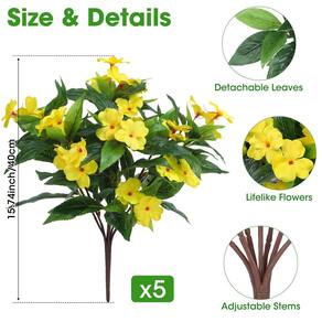 5 peças de flores artificiais ao ar livre, plantas falsas, resistentes a UV, hastes de vegetação, arbustos falsos, flores de plástico para jardim, varanda, plantador, caminho, janela, caixa, casa, ambientes internos e externos.