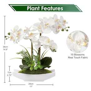 Especificações do produto: - Nome: flores artificiais de orquídeas brancas - Cor: flores brancas de orquídea - Tamanho: orquídeas internas de 15" / 39 cm de altura - Material: flores de poliuretano, folhas de orquídea de borracha - Características: orquídeas falsas cores vibrantes, folhas de orquídeas artificiais realistas, planta de orquídea artificial adequada para decoração interna e externa. - Ocasiões: Arranjo de peças centrais de orquídeas de seda, decoração de plantas de escritório, banheiro, casa, casamento, decoração de festa, planta de mesa. - Incluído na embalagem: 1 peça de arranjos de flores artificiais com vaso Descrição do produto: - A linguagem floral Phalaenopsis é meu amor por você, simbolizando alta limpeza e elegância. Não perca a chance de presentear esta delicada flor para seus entes queridos e expressar seu sentimento genuíno por eles! - Orquídea branca sintética em vaso. Design exclusivo e estilo contemporâneo, este arranjo de orquídeas de seda apresenta três hastes em cascata. planta de orquídea falsa bem feita e o toque real pode ser utilizado por um longo tempo. - As orquídeas falsas para decoração de casa têm varanda e pátio de uma maneira vibrante e elegante, ou coloque em suas janelas. Flores artificiais para decoração deixarão sua casa cheia de natureza e iluminarão sua vida, aliviarão o desconforto e relaxarão suas emoções. - Dlicado de planta de orquídea artificial e pétalas de orquídea se estendem sobre um belo vaso cerimico, flores artificiais de orquídeas com vaso como presentes encantadores para amantes, amigos e companheiros. Decorações de flores também são ótimas como presente para casamento, inauguração de casa, aniversário, dia das mães. Observação: - Devido a diferentes configurações de luz, as orquideas. A cor real da Naturales Vivas pode variar um pouco das imagens. - Pode haver um pequeno erro nos dados artificiais das flores das orquídeas devido a diferentes medidas manuais. - Aparência realista e toque real --- com uma textura macia, as flores falsas de orquídea têm algumas plantas falsas de musgo e samambaia no vaso, o que o torna mais realista e tem um sopro de vida. A orquídea vem forrada com flores falsas em uma cor branca elegante, e seus caules, folhas e botões ostentam a aparência ligeiramente brilhante e resistente que você esperaria da coisa real. - Versátil em design e decoração --- as orquídeas artificiais vêm com um vaso branco em forma de barco, que é perfeito em tamanho e caberá muito bem em seu escritório, sala de estar, cozinha ou banheiro. E também é o presente ideal para um colega de trabalho que está começando um novo emprego ou para uma festa de inauguração de casa de um amigo. - Baixa manutenção e sem variações sazonais --- As flores de orquídea phalaenopsis não requerem cuidados e manutenção regulares. Elas permanecerão intactas e ficarão ótimas com menos atenção durante todo o ano, nenhuma flor cairá das plantas falsas. Quem sofre de alergias ficará agradecido porque nunca será alérgico a flores falsas. - Segurança e material premium --- Feitas com poliuretano e plástico de alta qualidade, as flores artificiais de orquídea são seguras para seu filho e animais de estimação. O material durável e flexível permite fácil dobra e remodelação. - Decore sua casa com flores artificiais de orquídeas Briful --- As flores artificiais de orquídea branca têm 38 cm de altura. O pote tem 7 cm de altura com uma base resistente de 28 cm de diâmetro. Fundada em 1995, a Briful tem anos de experiência no design, desenvolvimento e fabricação de plantas e flores artificiais decorativas internas e externas de alta qualidade, caixas de presente, velas, etc. Bem-vindo à nossa loja.