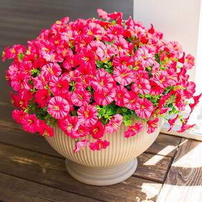Flores artificiais artificiais para decoração ao ar livre primavera verão Características do produto: Lista de produtos: 12 pacotes de flores artificiais de glória da manhã ao ar livre Nome da cor: vermelho, fúcsia, branco, roxo, amarelo, rosa, rosa-choque, azul, laranja, (Fúcsia, roxo), (Fúcsia, roxo, branco, amarelo), (roxo gradiente, amarelo gradiente, azul gradiente), (Fúcsia, roxo, rosa-choque, vermelho, branco, amarelo) Adequado para: ao ar livre, exterior, porta da frente, varanda, pátio, quintal, plantador, varanda, cesta suspensa, corredor, escritório, hotel, caixa de janela, jardins, casa, etc. Ocasiões recomendadas: casamento, festa, aniversário, inauguração de casa, faça você mesmo, arranjo de flores, decoração de vários locais de eventos, etc. Sem manutenção: Estas flores artificiais não precisam de rega ou remoção de ervas daninhas. Você pode desfrutar de sua beleza durante todo o ano! As flores falsas parecem reais e elegantes, o que as torna românticas para sua casa, varanda, pátio, varanda, jardim, quintal, interior e exterior. Ela floresce o ano todo e adiciona uma sensação de calor à sua casa. Lindas decorações ao ar livre A linda flor de seda sintética para o exterior é composta por 12 ramos de flores artificiais de ipomeia. Cada ramo suspenso tem garfos de flores e folhas de eucalipto verde-escuras. As plantas de flores falsas são feitas de seda e plástico de alta qualidade que se parecem com as reais e são resistentes o suficiente. Mantém sua linda cor de primavera por um longo tempo em qualquer clima. Estas flores artificiais para uso externo são resistentes aos raios UV e não desbotam, resistentes o suficiente para qualquer clima. - O pacote inclui: 12 pacotes de flores artificiais de ipomeia ao ar livre com folhas de eucalipto. O pote não está incluído. - Resistente a UV e não desbota. Estas plantas artificiais para uso externo são feitas de seda e plástico de alta qualidade, resistentes a UV e a todas as intempéries, à prova d'água, garantindo beleza duradoura e não desbota ao sol. - Plantas realistas ao ar livre: essas flores falsas ao ar livre têm aparência real, esses ramos artificiais exalam uma aparência elegante e autêntica, tornando-os decorações ideais para sua casa, exterior, jardim, quintal, pátio, varanda, porta da frente, varanda, canteiro de flores, plantador, vaso e caixa de janela, tanto em ambientes internos quanto externos. - Baixa manutenção e economiza seu tempo: flores artificiais para ambientes externos oferecem uma solução conveniente e sem esforço para melhorar o apelo estético e o ambiente vibrante de qualquer ambiente. Com uma seleção diversificada de opções de flores notavelmente realistas, elas trazem beleza duradoura e cores vivas sem a necessidade de manutenção extensiva. - Flores de glória da manhã com folhas de eucalipto: eleve o ambiente da sua casa com estes 12 feixes de flores externas falsas, flores coloridas com folhas verdes, infunda beleza natural em seus espaços.