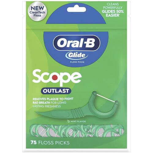 Palitos de fio dental completos Oral-B Glide, palitos de fio dental, Scope Outlast, 75 quilates, palitos de fio dental