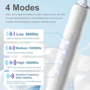 - Ajuste de quatro velocidades | Nosso fio dental com 4 velocidades, alta (18.000Hz), média (12.000Hz), baixa (8.000Hz), velocidade variável (8.000-18.000Hz) quatro modos, podemos escolher o modo certo para a nossa situação e proteger as gengivas macias e sensíveis de uma maneira mais suave. O fio dental elétrico tem um forte classificação à prova d'água, então nós pode lavar com água sem se preocupar.