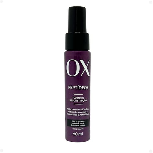 A Linha OX Peptídeos é a ideal para cabelos com curvaturas. Isso porque os Peptídeos inteligentes se adaptam conforme a necessidade dos fios, penetrando nas regiões danificadas, preenchendo e restaurando os cabelos. O Óleo de Argan possui alto poder nutritivo que sela a cutícula retendo as vitaminas e proteínas dentro dos fios, combinados ao Sistema OX Beleza Duradoura, é a fórmula certa pra combater a porosidade e proporcionar cabelos reconstruídos e definidos por muito mais tempo. Reconstrói 90% da elasticidade do fio desde o primeiro uso. Sistema OX Beleza Duradoura - É uma tecnologia exclusiva, capaz de liberar sequencialmente os ingredientes,proporcionando um tratamento prolongado aos fios. pH Fluído OX Peptídeos: 3,50a 4,00.