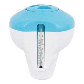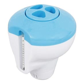 Dispensador de cloro flutuante com termómetro Intex para piscinas e spas. Indicado para piscinas e spas de até 3,6m.Capacidade para pastilha de cloro ou bromo de até 2,54cm.Conta com anel de controle ajustável para a velocidade a solução do cloro. Para poder desfrutar das suas piscinas e spas insufláveis Intex é fundamental que tenham uma correta manutenção. Não é só para que a água se veja limpa, mas também para evitar o risco de doenças devido à contaminação da água. É muito fácil ter em perfeito estado a sua piscina com os artigos e produtos necessários. Recomendamos-lhe um dispensador de cloro flutuante com termómetro, é dois em um Não só poderá manter a água limpa, mas também poderá controlar a temperatura em todo o momento. É muito fácil de utilizar e a água estará sempre perfeita. Este dispensador admite tabletes de cloro ou bromo de 5,54 cm as pastilhas vendem-se por separado . Estas tabletes espalham-se tanto na piscina como no spa através de um anel de controlo ajustável e assim poderá controlar a libertação dos produtos químicos. O dispensador com termómetro incluído Intex está recomendado para piscinas ou spas Intex de até 3,66 metros. O tamanho é de 14,5x12 cm e está fabricado com polipropileno não corrosivo que o torna mais seguro e duradouro. Lembre-se que é fundamental ter a água da sua piscina ou spa sempre limpa para evitar qualquer tipo de doença. E para evitar que isto aconteça o melhor é o dispensador de cloro flutuante para piscinas e spas da Intex. Para além disso, agora tem um desenho renovado de cor azul e branco.Termómetro incluído para medir a temperatura da água da piscina ou SpaMaterial: polipropileno resistente e anti-corrosivo