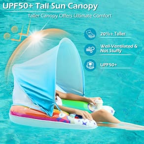 - Flutuador de piscina inflável com cobertura solar mais alta e removível - A cobertura é mais alta, oferece uma melhor visão e o máximo conforto. Dossel bem ventilado com malha traseira e UPF50, tem ótimo fluxo de ar para se manter fresco e confortável.