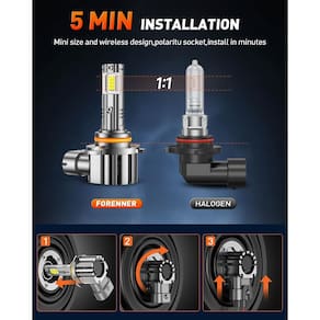 forenner Lâmpadas de neblina 9006 9005, luz 800% mais brilhante com lâmpada tudo-em-um, instalação sem complicações, lâmpadas IP68 à prova d'água, faróis de neblina HB3 HB4 pacote com 4 - ?Visibilidade aprimorada? A lâmpada forenner 9005 9006 possui um chip CSP de dois lados, oferecendo um brilho notável de até 36.000 lúmens e uma temperatura de cor de 6000K para uma iluminação mais clara e brilhante. Isso aumenta a visibilidade, permitindo que você veja mais e mais longe enquanto dirige à noite, garantindo viagens mais seguras após o anoitecer. - ?Vida útil extensa de 50.000 horas? As lâmpadas forenner 9005 9006 são projetadas com alumínio de alta qualidade e equipadas com um dissipador de calor de alumínio prensado a frio e um ventilador de resfriamento de alta velocidade funcionando a 12.000 RPM. Este sistema de resfriamento avançado dissipa eficientemente o calor do chip, garantindo uma vida útil impressionante de até 50.000 horas. Desfrute de um desempenho confiável e duradouro com menos substituições e maior tranquilidade. - ?Padrão de feixe perfeito? A lâmpada 9005 9006 apresenta um design compacto 1:1 semelhante às lâmpadas de halogêneo, proporcionando um padrão de feixe precisamente focado para uma cobertura ideal da estrada. Este design garante iluminação de ângulo amplo e de longa distância, mantendo linhas de corte claras para evitar o brilho dos motoristas que se aproximam, melhorando a segurança para todos na estrada. - ?Fácil instalação? As lâmpadas 9005 9006 apresentam um design elegante sem fio em linha, eliminando a necessidade de drivers ou conectores externos. Com drivers e ventiladores integrados que ocupam o mínimo de espaço, a instalação dessas lâmpadas é rápida e simples. Basta conectá-las como lâmpadas halógenas padrão — sem necessidade de ferramentas ou modificações. - ?Serve para 99% dos veículos? As luzes 9005 9006 são projetadas para funcionar com 99% dos sistemas de veículos, embora alguns modelos específicos possam precisar de um decodificador CANBUS para um desempenho ideal. Se você tiver algum problema ou precisar de suporte adicional, sinta-se à vontade para entrar em contato com a forenner para obter assistência.