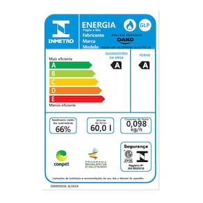 Caracter?sticas: Visor do forno amplo Puxador em alum?nio escovado Design, conforto e seguran?a no manuseio di?rio Vers?o 4 bocas com Mega Chama e forno de 60L Grades individuais de ferro fundido com 6 pontos de apoio Mais estabilidade para as panelas. 2 prateleiras deslizantes Forno Limpa F?cil Isolamento t?rmico Impede a perda de calor Assa de maneira uniforme e economiza g?s L?mpada de forno Acendimento autom?tico Inmetro:003853/2018