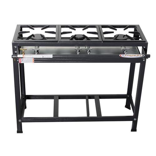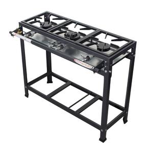 O Fogão 3 Boca é ideal para uso doméstico ou para o ramo industrial. Foi desenvolvido com grelhas 30x30 cm em ferro fundido e possui 1 queimador duplo e 2 queimador simples.