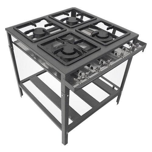Indicado para restaurantes e cozinhas industriais de médio porte, o Fogão 4 Bocas 2 Bocas Duplas Stand Baixa Pressão conta com quadro superior estampado com perfil 5, registros em latão forjado e tubo de distribuição de gás com entrada reversível.