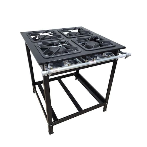 Características Técnicas: Regulado de fábrica para gás GLP alta pressão Estrutura em aço carbono com pintura a pó eletrostática Espessura 0,9mm (chapa 20) Tubo de alimentação de gás de 1"" Registro regulador palito durata Grelhas de ferro fundido 30x30 com perfil de 7cm Queimadores Alta Pressão Starline Tipo de instalação: de pé (para panela) Espaço suficiente para acomodar panelas Podem ser equipados com fornos Modulável e desmontável Este produto será entregue desmontado **