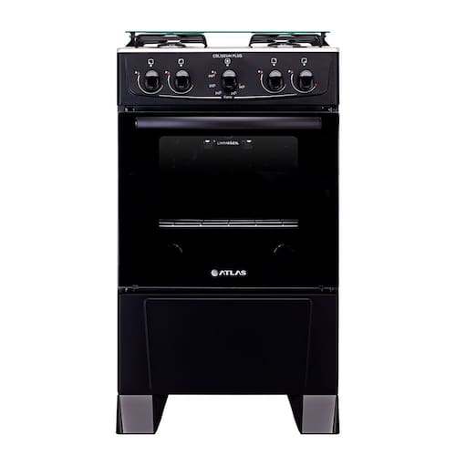 Características: Marca: Atlas Modelo: Coliseum Plus Forno com capacidade de 50 Litros Acabamento da mesa em inox Acendimento Manual Acabamento do forno limpa fácil Vidro duplo do forno Trempe Dupla em Aço Esmaltado 1 Grade deslizante do forno Botões Removíveis Potência dos queimadores: 2Q Ramal de 1,7kW e 2Q Família de 2,0kW Eficiência Energética: A