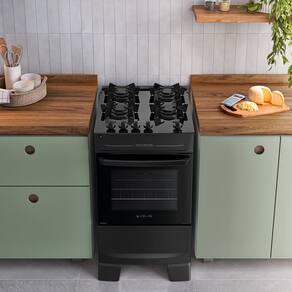 O Fogão 4 Bocas de Piso com Mesa de Vidro une design moderno e alta performance com 7,34 kW de potência total e acendimento automático. Equipado com botões Top Control no topo da mesa e puxador ergonômico, ele oferece máxima segurança e praticidade no manuseio diário. Suas trempes individuais de aço com 6 apoios garantem estabilidade, enquanto os pés altos facilitam a limpeza do ambiente. O forno de 48 litros possui acabamento Limpa Fácil, porta de vidro duplo e visor amplo para total controle dos seus assados. Sendo Bivolt e robusto, este modelo é a escolha funcional e elegante para transformar sua cozinha.