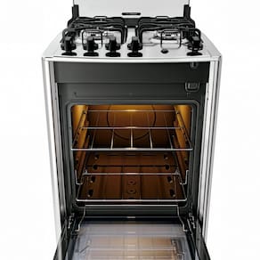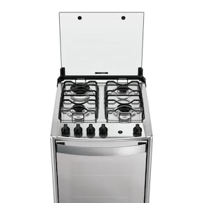 Equipado com 4 queimadores, incluindo Mega Chama de 2,5 kW, oferece potência ideal para receitas rápidas e uniformes. Seu forno de 60 litros, com vidro duplo temperado e ampla visão, garante praticidade, segurança e excelente capacidade para toda a família.