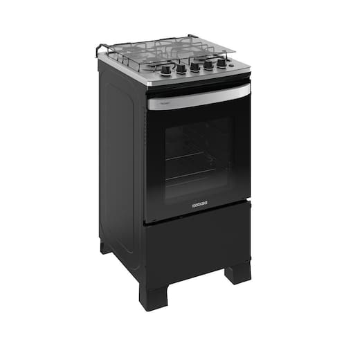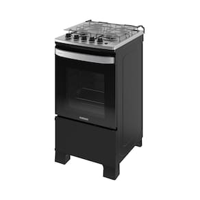 O modelo conta com queimadores bem distribuídos, proporcionando melhor aproveitamento da área de cocção. O acendimento automático traz mais praticidade e segurança, enquanto o forno com revestimento limpa-fácil facilita a limpeza após o uso. As trempes integradas garantem estabilidade para as panelas, e o controle integrado na mesa oferece ergonomia no manuseio.