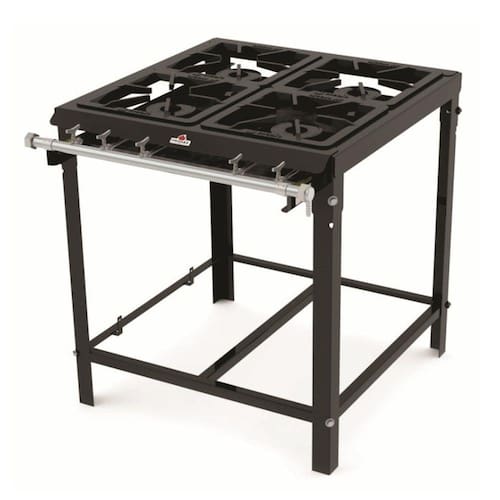 ESPECIFICAÇÕES: Estrutura desmontável em aço com acabamento em pintura epóxi na cor preta Grelhas 30x30 removíveis Queimador simples chama dupla Registros industriais com estágios contínuos cromados Bandeja coletora de gordura Sapatas plásticas para os pés dos fogões Alimentação de gás em baixa pressão