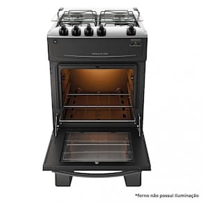 Características: Mesa - Inox Trempe - Dupla de Arame Acendimento - Automático Tampa mesa - Tampa de Vidro Posição manípulos - Top Control Manipulador removível 4 Queimadores Rápido - 2 Queimadores 2,0 kW Semi-Rápido - 2 Queimadores 1,67 kW Capacidade Forno 50L Alimentação - Gás Potência Forno 1,78 kW Acabamento Interno do Forno - Esmalte Limpa Fácil Prateleiras - 1 Deslizante Vidro porta do forno - Vidro duplo temperado Puxador - Aço Pintado Visor porta do forno - Total Válvula de segurança do forno