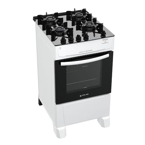 Marca: Atlas Modelo: Monaco Top Glass Referência: 300000707 Cor: Branco Tipo: Fogão de piso Capacidade do forno: 50 Litros Tipo de Gás: GLP Tipo de mesa: Em vidro temperado sem bordas Grades: Individuais e Robustas Botões: Removíveis e na Base da Mesa Trempes: Individuais de aço esmaltado Acabamento do interior do forno: Limpa Fácil Porta: Porta com vidro duplo Grades do forno: 1 grade deslizante Puxador: Em aço esmaltado Tipo de acendimento: Automático total 02 Queimadores Ramal: 1,7 kW de potência 02 Queimadores Família: 2,0 kW de potência Diferenciais: O Fogão 4 Bocas Monaco Top Glass possui forno funcional de excelente tamanho e ampla visão de espaço. Suas grades individuais e robustas oferecem mais espaço e segurança no apoio de panelas grandes, além da mesa ser em vidro temperado oferecendo beleza e facilidade na limpeza. Classificação Energética: A na mesa e no forno Voltagem: Bivolt Pés: Pés mais altos, facilitando a limpeza. Dimensões do produto (A x L x P): 87,9cm x 48cm x 59,5cm Peso do produto: 22,9kg Dimensões do produto embalado (A x L x P): 90,8cm x 49,8cm x 62,4cm Peso do produto embalado: 24,7kg Garantia: 1 ano Link do manual: CLIQUE AQUI PARA BAIXAR Conteúdo da embalagem: 01 Fogão 4 bocas e 01 manual