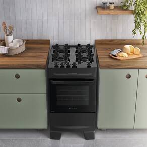 As grades de aço com 6 apoios mantêm as panelas firmes, garantindo na hora de cozinhar. O forno e queimadores Limpa Fácil, simplificam a faxina e ajudam você a ganhar tempo no dia a dia.