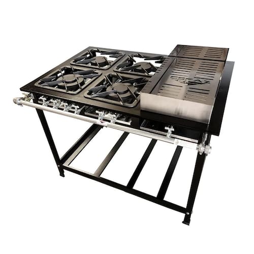 Esse Fogão conta com sua mesa toda estampada, o que impede o acúmulo de resíduos em suas emendas, garantindo máxima higiene e segurança, conta também com banho maria de 70x30 cm.
