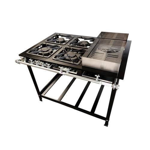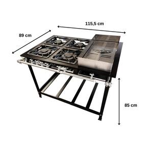 Esse Fogão conta com sua mesa toda estampada, o que impede o acúmulo de resíduos em suas emendas, garantindo máxima higiene e segurança, conta também com banho maria de 70x30 cm.