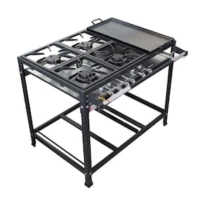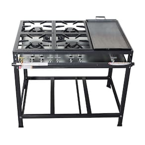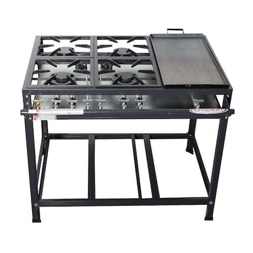 O Fogão 4 Bocas é ideal para uso doméstico ou para o ramo industrial. Foi desenvolvido com grelhas 30x30 cm em ferro fundido e possui 2 queimadores duplos e 2 queimadores simples.