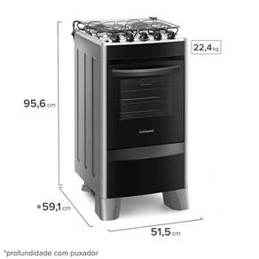 Além disso você ganha mais praticidade e agilidade ao preparar suas receitas, devido ao seu forno de 57 litros que permite espaço para qualquer receita e os queimadores potentes, sendo 1 rápido e 3 semirrápidos.