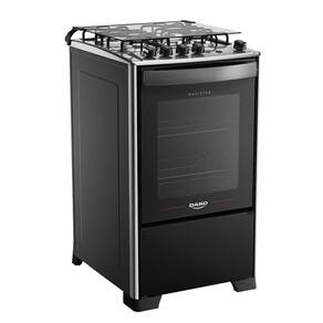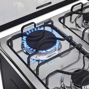 A versão 4 bocas conta com 2 queimadores Semirrápido de 1,7kW, 1 queimador Rápido de 2,0kW, 1 queimador Chama de 2,5kW e forno com capacidade de 60 litros.