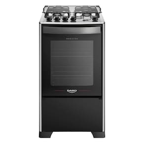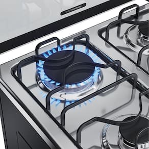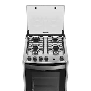 A versão 4 bocas conta com 2 queimadores Semirrápido de 1,7kW, 1 queimador Rápido de 2,0kW, 1 queimador Mega Chama de 2,5kW e forno com capacidade de 60 litros.