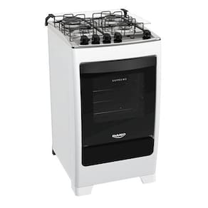 Este fogão da linha Supreme, com mesa em inox top control, oferece resistência e ergonomia. Conta com acendimento automático, grades duplas de aço esmaltado para maior estabilidade, queimador Mega Chama, tampa de vidro temperado e lâmpada interna no forno. A versão de 4 bocas inclui 2 queimadores de 1,7 kW, 1 queimador Família de 2,0 kW e 1 queimador Mega Chama de 2,5 kW.