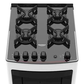 O Fogão Dako possui queimadores potentes e econômicos selados com tecnologia italiana e Trempes de ferro fundido que são firmes e garantem segurança e durabilidade.