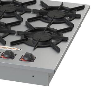 Esse modelo de fogão 4 bocas cooktop alvenaria é de baixa pressão, por isso é necessário o uso de válvula reguladora. Conta com quatro queimadores simples. As grelhas do fogão 4 bocas de alvenaria são confeccionadas em ferro fundido no modelo estrela.