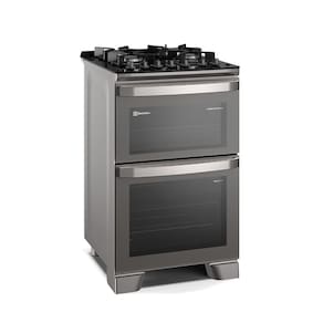 Possui dois fornos independentes para que você tenha mais rapidez e liberdade na hora de preparar suas receitas favoritas e deixa sua cozinha mais elegante, graças à cor cinza e ao design moderno.