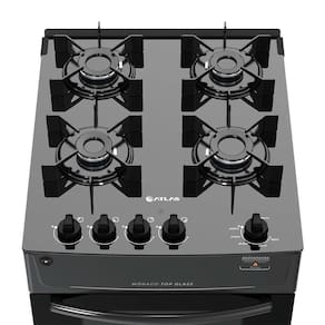 Fogão 4 Bocas Mônaco Top Glass Mesa Vidro Preto Atlas Bivolt
