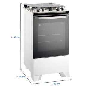 Com uma capacidade de 4 bocas, sendo uma tripla chama, que vai deixar suas receitas mais homogêneas, o forno com os 72,6 litros, entrega um amplo espaço interno, com uma porta em vidro que permite visualizar o preparo do prato. Além de ter um revestimento FastClean que facilita a limpeza evitando o acumulo de gorduras.