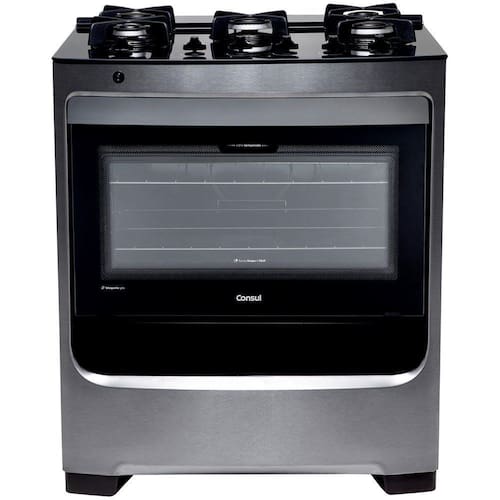 O Fogão a Gás CFS5VAR da Consul possui design moderno que além de embelezar sua cozinha, ainda facilita a limpeza. O fogão conta com 5 bocas, acendimento automático, mesa de vidro temperado e grades individuais em ferro fundido, que aumentam a estabilidade das panelas, deixando o preparo das refeições mais seguro. Ainda possui forno Limpa + Fácil, com capacidade de 96 litros e prateleira deslizante com três níveis de regulagem de altura.