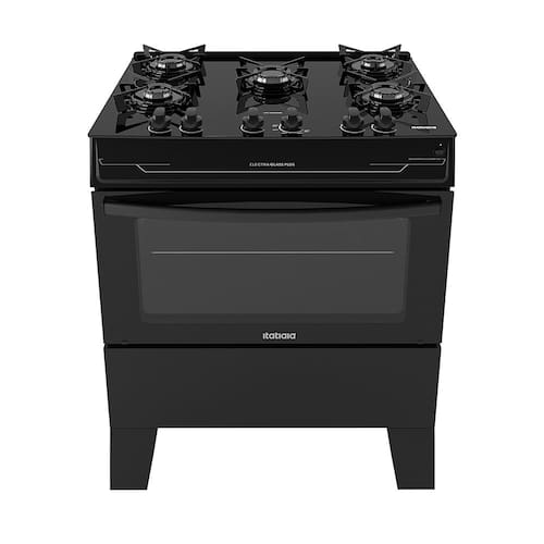 Fogão 5 Bocas a Gás Itatiaia Electra Glass Plus Mesa de Vidro Acendimento Automático Preto Fosco Bivolt