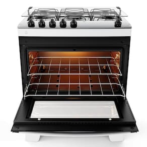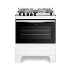 Voltagem: Bivolt | Padrão de tomada: 10A | Cor: Branco | Quantidade de queimadores: 5 | Tipo de acendimento: Automático | Acabamento da mesa: Inox | Tipo de montagem: De Piso | Dimensões do Produto (largura x altura x profundidade): 76,16 x 93,32 x 57,96 cm | Cabo de energia: 96 cm | Funcionamento: Gás | Capacidade do forno: 86,5 litros | Acabamento do forno: Limpa fácil | Luz no forno: (lâmpada 220v acompanha o produto) | Vidro do forno: Vidro Duplo | Tampa: Sim | Trempes: Dupla de aço esmaltado | Grades do forno: 2 grades deslizantes | Botões removíveis: Sim | Potência dos queimadores: 2Q Semirrápido de 1,67kW, 2Q Rápido de 2,0kW e 1Q Tripla Chama de 3,3kW | Sistema corta/bloqueia gás: Sim | Eficiência energética: A