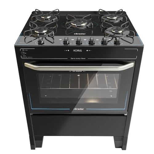 O Fogão 5 Bocas Braslar Automático Horus Preto combina modernidade e praticidade, sendo ideal para cozinhas que exigem eficiência e design elegante. Com uma mesa de vidro temperado de 6mm, o fogão é extremamente fácil de limpar, permitindo que você mantenha a cozinha organizada e reluzente no dia a dia. As trempes individuais esmaltadas não só trazem um visual refinado como também são práticas para manuseio, ajudando a manter a estabilidade das panelas e facilitando a limpeza após o uso.
