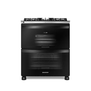 Características: Capacidade -L-: Elétrico 39L/Gás 96L Funcionamento: Gás,Elétrico Acabamento da mesa: Vidro Tipo: Piso Quantidade de Bocas: 5 Timer: Analógico Painel: sim Forno: Duplo Tipo de gás: GN e GLP Acabamento da Trempe: Ferro Fundido Tipo de acendimento: Automático Plug e Tomada: 16A Inmetro:000414/2018